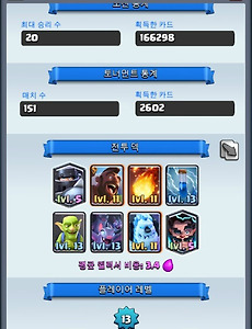 클래시로얄7 클래시로얄 대규모 업데이트 퀘스트, 터치다운 클래시로얄 대규모 업데이트 이번 포스팅은 클래시로얄 대규모 업데이트에 대해 하겠습니다. 이번에 뉴스창에 새로운 업데이트 소식이 발표되었습니다. 엄청난 업데이트라고 생각됩니다. 그 이전에도 한 번 언급되었던 업데이트입니다. 클래시로얄에 이제 퀘스트가 생깁니다. 일일퀘스트를 받을 수 있으며 하루에 한 번씩 바꿀 수 있는 퀘스트 입니다. 또한 터치다운 모드가 업데이트되며 터치다운모드에서도 카드를 얻을 수 있습니다. 이번에 플라잉머신이 업데이트되며 이벤트를 진행하게 되었는데 새로운 업데이트가 진행되며 어떻게 바뀔지 궁금증을 증폭시키고 있습니다. 물론 퀘스트가 나왔기 때문에 조금 받기 힘든 감이 있는 것 같지만 그래도 하루에 보상을 받을 수 있다는 점은 새로운 것 같습니다. 과인 이번 업데이트가 아주 좋은 쪽으로.. 2017. 10. 7. 클래시로얄 메가나이트 덱소개 클래시로얄 메가나이트 덱소개 이번 포스팅은 클래시로얄 메가나이트에 대해 하겠습니다. 새로운 전설카드가 나오게 되었습니다. 게임 플레이를 하다가 전설상자가 나와서 열었는데 메가나이트가 나왔습니다. 저는 별로 안좋은 줄 알고 있었는데 써보니까 굉장히 좋은 카드인 것 같습니다. 우선 떨어질 때 데미지를 주게 되며 점프 데미지가 따로 들어갑니다. 도둑처럼 스킬 쓰는 도중에 무적은 아니지만 점프해서 데미지를 주면 거의 2배 가까이 데미지가 들어가기 때문에 엄청나게 파워가 강력합니다. 체력도 많아 방어와 공격이 가능한 밸런스가 좋은 유닛인 것 같습니다. 우선 엘릭서 7개가 필요해서 엘릭서에 부담이 조금 되긴 하지만 7개를 써서 소환할 때 데미지가 1차로 들어가기 때문에 방어용으로 사용해도 괜찮을 것 같습니다. 현재.. 2017. 9. 30. 클래시로얄 상자 사이클 알아보기 클래시로얄 상자 사이클 이번 포스팅은 클래시로얄 상자 사이클에 대해 하겠습니다. 클래시로얄에 대해 열심히 찾아보신 분들은 아시겠지만 클래시로얄 상자가 나오는 순서는 랜덤이 아닙니다. 정말 충격적입니다만 클래시로얄의 상자는 순서가 정해져 있습니다. 이 순서를 상자 사이클이라고 하며 많은 상자를 오픈했을 경우 자이언트상자, 마법상자, 슈퍼마법상자, 전설상자 등이 나올 수 있습니다. 하지만 사이클이 거의 600개당 한 개 정도이니 과금해서 상자 오픈으로 더 좋은 상자 혹은 좋은 카드를 먹으려고 하는 생각은 별로 좋은 생각이 아닙니다. 2017/08/12 - [IT] - 클래시로얄 전설상자에 대해 이러한 클래시로얄 상자 사이클을 알려주는 사이트가 있습니다. 사이트에 들어가서 자신의 아이디 태그만 입력하면 상자 .. 2017. 9. 12. 클래시로얄 전설카드 얻는 법 6가지 클래시로얄 전설카드 얻는 법 6가지 이번 포스팅은 클래시로얄 전설카드 얻는 법에 대해 하겠습니다. 클래시로얄 전설카드를 얻는 법에는 여러가지 방법이 있습니다. 여러 방법 중 가장 쉬운 방법은 보석을 사서 슈퍼마법상자를 여는 방법이 있습니다. 역시 돈을 쓰면 쉽게 전설카드를 얻을 수 있습니다. 하지만 무과금으로 플레이하는 유저들은 전설카드를 얻기 매우 어렵습니다. 이렇게 얻기 힘든 전설카드를 얻는 방법을 설명해보겠습니다. 아레나에서 전투를 하다 보면 나만 전설카드가 없는 것 같은 기분이 드는데 어떻게 하면 전설카드를 빨리 얻을 수 있는지 알아보겠습니다. 우선 레벨이 낮으면 할 수 있는 것들이 많이 제한되기 때문에 레벨을 올리며 플레이 시간을 늘리는 것이 중요합니다. 1. 상자에서 전설가장 쉬운 방법이지만 .. 2017. 9. 9. 클래시로얄 2vs2 전투 클래시로얄 2vs2 전투 이번 포스팅은 클래시로얄 2vs2에 대해 하겠습니다. 몇일전에 클래시로얄 2vs2모드가 다시 나오게 되었습니다. 두 명이서 플레이를 할 수 있다는 장점이 있는데요. 지금 이벤트로 마법상자 2개를 무료로 주고 있습니다. 2대2 전투에 대해서 설명하겠습니다. 개요2vs2 전투는 2017년 3월 24 패치로 클랜전의 전투 방식으로 공개되었습니다. 이후 2017년 6월 12 패치부터는 따로 2v2를 즐길 수 있게 되었습니다. 2017년 7월부터 약 2주 정도 후 2v2를 1달간 다시 부활시켰다가 8월 1일부터는 못하게 되었습니다. 2017년 8월 14일에 2v2 버튼이 다시 등장하고 시작까지 7일이 남았다는 표시가 떴습니다. 지금은 끝난 크라운 챔피언십과 같이 버튼이 등장하게 되었습니다.. 2017. 8. 23. 클래시로얄 전설상자에 대해 클래시로얄 전설상자 획득 이번 포스팅은 클래시로얄의 전설상자 획득에 대해 하겠습니다. 왜냐하면 제가 전설카드 한장을 뽑았기 때문입니다. 그냥 상자에서 뽑을 수 있는 운이 좋은 사람은 아닙니다. 게임 내에서 전투를 하고 받을 수 있는 전설상자에서 받았습니다. 정말 운이 좋았다고 할 수 있는데... 전설상자는 전설카드 1장 밖에 주지 않습니다. 무려 24시간이나 걸리는데 말입니다. 그리고 나온 것은 인페르노 드래곤... 정말 쓰레기라고 불리는 카드가 나왔습니다. 전설을 처음 먹어보니까 그래도 좋은 카드가 나오길 빌면서 상자를 열었는데 인페르노 드래곤이라 살짝 실망했지만 이 게임은 어느 정도 실력으로 커버가 가능