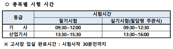 오전에는 기사시험 오후에는 산업기사 시험이 있습니다.