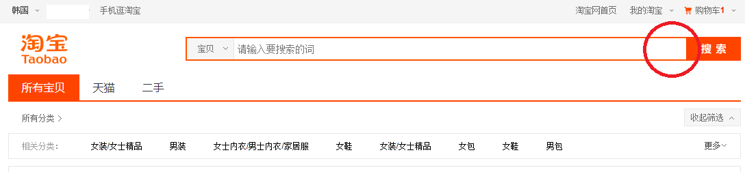 오른쪽위에서 돋보기모양처럼 생긴것이 타오바오 이미지 검색을 할 수 있습니다.
